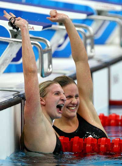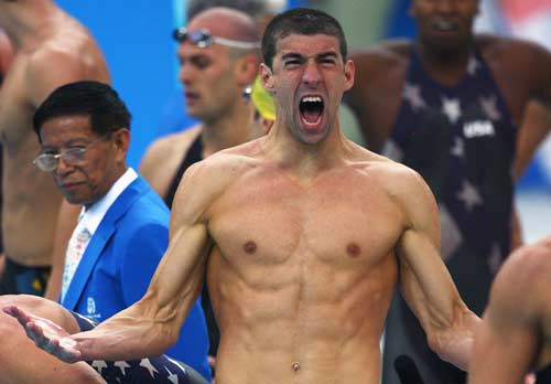 リレー後のフェルプス選手