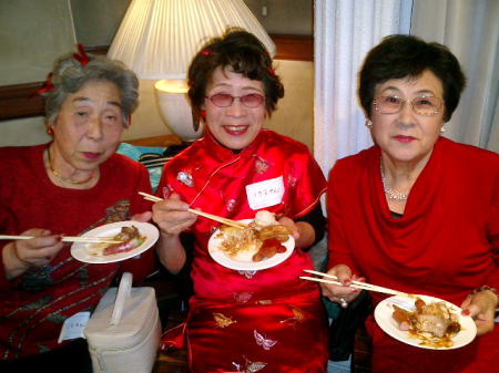 ![]() とことん真っ赤です!! 上から下まで真っ赤の いそこさん ど派手なチャイナで登場の いくこさん 赤い服はいっぱいあると 真っ赤で登場のすみえさん |