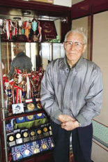 われた「平成19年度後期メダル栄光(体育賞)」のメダル授与式で数多くの優秀な選手が集まる中、成績も年齢的にもひときわ目を引く“小柄なスイマー”がいた。年齢別マスターズ水泳競技で8種目の世界記録を持つ91歳の現役スイマー、小林五郎さん(大内御堀)だ。これまでに国内や世界の数多くの大会に出場。各大会で優勝や世界記録を塗り替えるなど、90歳を超えた今も輝かしい成績を残し続けている。 幼いころから泳ぐことがとにかく好きだったという小林さん。プールなどがない時代、毎日のように近くの海に行っては泳ぐ練習をした。中学生時代には水泳部を作って総合優勝にまで導いた。また、台北大学に入学後は台湾記録を更新したり、オリンピック最終予選で準決勝まで勝ち進んだりするほどの実力派だった。 そんな小林さんだったが、戦争を機に水泳から遠ざかることに。自身も出兵し、水泳ができない状況になった。戦後は混乱の中、大学で学んだ園芸と得意だった英語を生かしてアメリカの野菜関係企業に就職。その後、県農業試験場に再就職して定年退職まで勤めたが、その間も水泳とは縁遠い生活を送っていた。 再び水泳を始める転機が訪れたのは80歳の時。台湾で一緒に水泳をしていた仲間から久々に連絡があり、数十年ぶりに再会。「お前ならやれる!もう一度やってみないか」と仲間たちに激励され、今まで眠っていた水泳への情熱に火がついた。 毎日のように800メートルから1キロの距離を泳ぎ、81歳の時に出場したモロッコのカサブランカで開かれた「98年世界マスターズ水泳選手権大会」の80歳クラス・200メートル背泳ぎで3分42秒35を記録して初の世界新記録での優勝を果たした。それ以降も国内のみならず世界各地の大会に出場し、何度も優勝、世界記録を更新してきた。年を経ても記録に挑戦する気持ちは全く変わらない。満89歳の時にアメリカのサンフランシスコで行われたマスターズ大会に出場し、50メートルと100メートル背泳ぎ(90歳から94歳)で世界新記録を達成。さらに昨年には、体力的に難しいとされる200メートル背泳ぎ競技(90歳から94歳)に挑戦し世界記録を30秒以上も更新する4分7秒85というタイムで見事、世界記録樹立を成し遂げた。91歳になった現在も毎日のようにプールに通い、最低でも400〜500メートルの距離を泳いでいる。「『やるのなら徹底的にやれ。努力をし続けていれば運は必ず向こうからやってくる』という母親の教えが自分の原点。95歳で世界記録を作り、100歳まで人が驚くようないい泳ぎをするのが今の目標」と小林さん。いくつになってもチャレンジ精神を忘れない小林さんのスイマー人生は終わらない。』