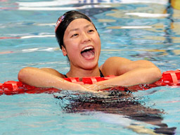 NEWS『日本選手権第3日(17日、東京辰巳国際水泳場)北京五輪代表選考会を兼ね、女子100メートル背泳ぎ決勝は伊藤華英(23)=セントラルスポーツ=が59秒83の日本新記録をマークし、2年ぶり3度目の優勝。派遣標準記録を突破し、五輪初出場を決めた。アテネ五輪選考会は代表有力とされながら、涙の落選。ライバル中村礼子(25)=東京SC=を制し、4年越しの悲願を遂げた。2位の中村も2大会連続の五輪代表。女子100メートル平泳ぎは種田恵(21)=JSS長岡=が初優勝、初の五輪切符を手にした。