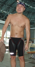 例のレーザーレーサーもどきを着ての初のレース。とにかく、練習も順調にしてきて、かなり調子はいい感じ。アップでもこれはいける!という手ごたえが…。招集直前、例の水着を着る。私は元々腿が異常に太いので、どのメーカーのスパッツ型水着も、「Lサイズ」が調度いい。しかし、このレーザーレーサーもどきの「Lサイズ」は、2サイズくらい小さい感じがするくらいきつい。はくのに思ったより時間がかかり、ちょっとあせる…。最終組は知っている顔ばかり…。招集で盛り上がる。そして、いよいよレースに!。スタートして200m。かなり抑えて行ったつもりが、前に出ている気がする。これは、水着のおかげ!?。軽い感じがする。300m、な、なんか足が重くなってくる…。400m、大腿四頭筋の外側が痛くて重くなってくる。600m、圧迫が強すぎるのか、腿が動かなくなってきた。マラソンで、腿が完全に張ってしまったような感じ。どうしよう??。平泳ぎでもしたら楽になるかしら??。700m、も、もうダメだ…。あと800もあるのに…。なんか動けば動くほど、締め付けの罠にはまって行くような!?。でも完泳だけはしようと思い、かなりのペースダウンでゴール。上がると、もう腿はパンパンに張っていて、階段の昇り降りもきつい…。これは400くらいまでは良さそうだけど、それ以上の距離はどうかな…と言う感じ。ただ私の腿が太すぎるので、余計そうだったのかも。どっちにしても、違う水着で、もう一度計りたい…!?。