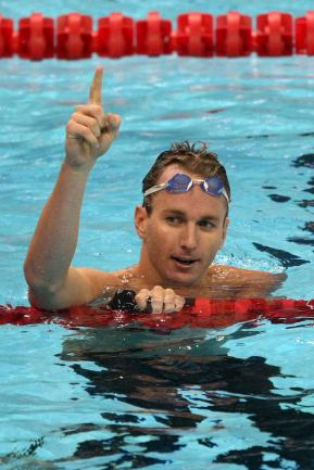 です!!。いや〜、やってくれますね〜。そして、そして、背泳ぎ王「ピアソル選手」、なんとなんと、この決勝で世界新更新です!!。これまたカッコい〜!!。フェルプス選手は2種目に出場!!。男子200m自由形、世界記録保持者だけあって圧勝!。ロクテ選手は棄権!?。バタフライも順当に決勝へ!。今回大注目のホフ選手、2個メ準決勝で09秒台ですよ。これは2個メも世界新が出そうです。2フリも絶好調!。15人が2分切り!。さすがアメリカ!。平泳ぎ、あらら、ソニ選手が落ちちゃった…。