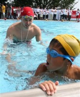 市川市の市立柏井小学校を一日教師として訪問した。 児童30人を対象に水泳を指導。五輪後、初めてプールに入ったためか、北島選手が125メートルを1人で、6年生4人と女子自由形の柴田亜衣選手が25メートルずつを泳ぐ変則リレーで敗れる“波乱”もあった。敗れた北島選手は「何も言えねえ」と五輪100メートルの優勝時の言葉で笑いを誘った。 記者会見では「一緒に水泳ができて、僕にも力になりました」と笑顔に。子供たちには「一生懸命練習することで、金メダルが取れた」と努力の重要性を説いていた。』