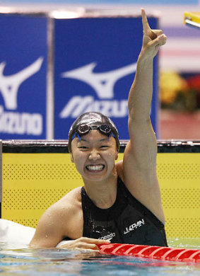 NEWS『女子200メートル個人メドレーで連覇し、喜ぶ北川麻美。2分11秒44を出し、北京五輪で自らがマークした日本記録(2分11秒56)を塗り替えた』