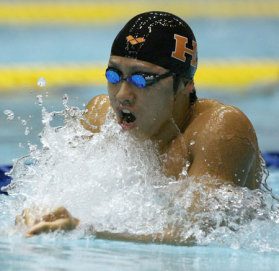 なんと言ってもすごいのが大塚選手(法政大)!! なんと200m平泳ぎで2分09秒台です!! こんなところにに北島選手の後継者が!! さすが法政大だな〜!? 入江選手またまた53秒台! 金藤選手も24秒台!