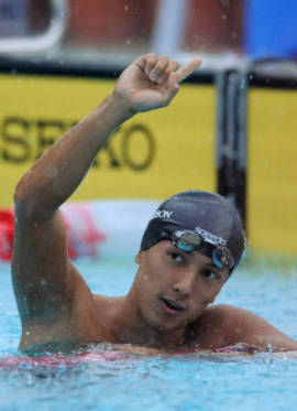 耕平(28)が、51秒33の日本新で優勝した。会場はタイムの出にくいとされる屋外プールで、しかも大雨という悪条件をものともしなかった。「前半、あまり頑張らずに入ったのがよかった。タイムは予定通り」と、自信に満ちた表情で話した。