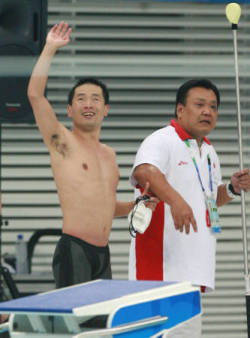 ○…成人男子四百メートルメドレーリレーで大阪の第1泳者を務めた北京五輪男子二百メートル背泳ぎ5位の入江(近大)が54秒32のトップでつなぎ、大会新の圧勝劇へ導いた。「53秒台を狙っていたので残念だけど、優勝ができ、来年につながるいいレースになった」。北京五輪の同リレー銅メダリスト、藤井(コナミ)らと晴れやかな表情を浮かべた。二百メートルが専門だが、前日の百メートルも優勝。「メドレーリレーでも活躍したいので百も力を入れていく」と意気込んでいた。』