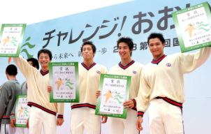 ○…成年男子二百メートルリレーは神奈川が昨年の秋田国体に続き、日本新で制した。昨年刻んだ1分31秒65を、予選で埼玉が1分31秒46に塗り替えたが、ならばと決勝で埼玉に競り勝ち、再び記録を差し替えた。第3泳者の周東を除く3人は昨年と同じ顔ぶれ。3人抜きを演じたアンカーの高安は「もう必死でした。前の3人がしっかり泳いでくれて、僕次第でしたから」と興奮気味に振り返った。