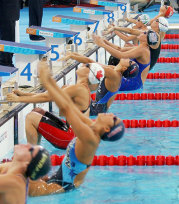 女子200メートル背泳ぎでは、中村礼子(日体大)が2分9秒88の日本新記録をマークし、銅メダルを獲得した。寺川綾(近大)は8位だった。男子100メートルバタフライでは、マイケル・フェルプス(米国)が51秒25の五輪新で制し、今大会5個目の金メダルを獲得した。